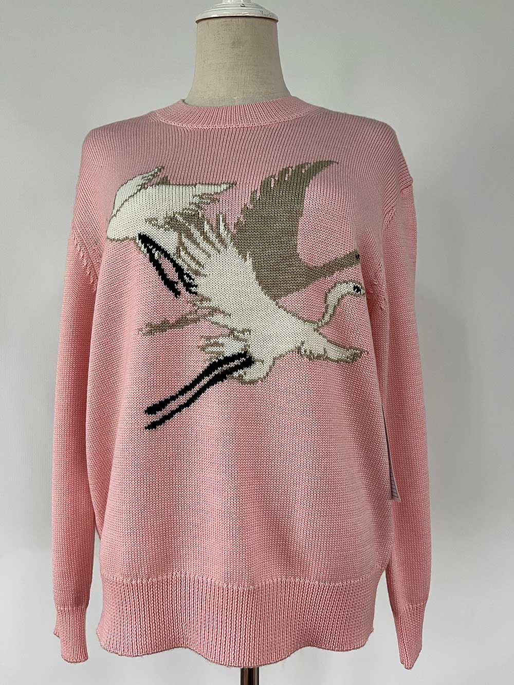 Home   /   Women’s Intarsia Fly Crane Graphic Sweater Wool Acrylic Blend Long Sleeve Crew Neck Pullover Jumper